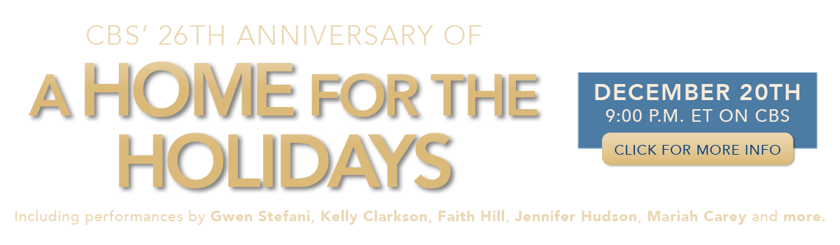 The 26th Annual A Home for the Holidays, is an entertainment special celebrating the joys of adoption. The special will air on Friday, December 20th at 9:00 p.m. ET on CBS.