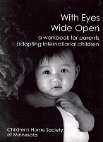 This workbook is for parents about to adopt an international child with life-experiences, the words we use to describe a child 12 months old or older who is already searching or attempting to attach to a parent figure who can meet her/his needs, who has already experienced pain and hopefully its relief, who recognizes a repeated pattern of distinct sounds (voices, words, verbal, and non verbal communications from a caregiver), who is learning his/her own body and what it can or cannot do or achieve, and who recognizes friend or foe.
