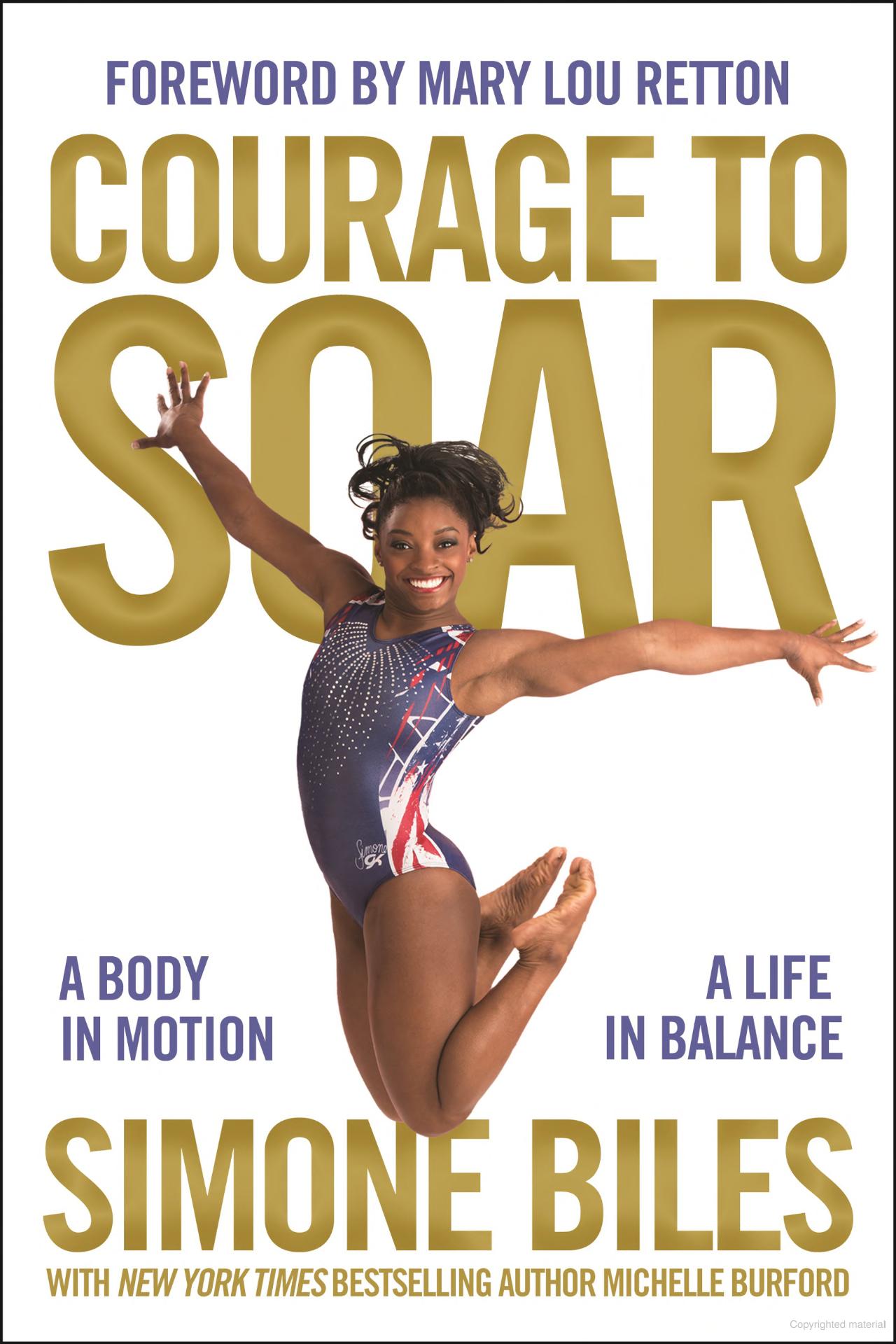 Courage to Soar: A Body in Motion. A Life in Balance is the autobiography of Simone Biles, one of the most decorated gymnasts in history. With the joy and enthusiasm that she lives her life, Simone takes readers on the journey of her child-hood. She begins with her early memories of living with her birth mother, her move to foster care and eventually her adoption by her grandparents.